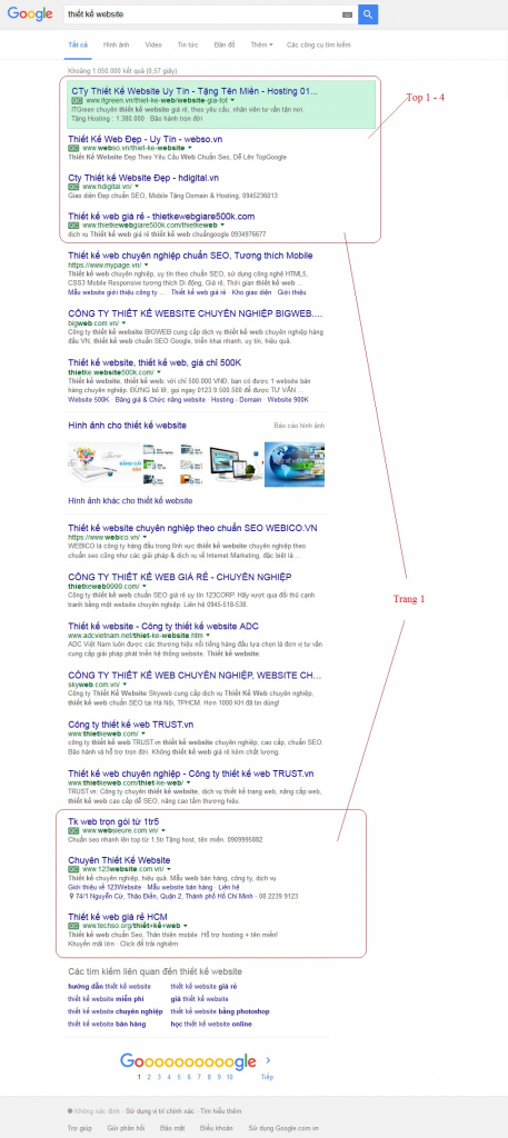 - Top 1-4 : 4 vị trí trên cùng. Thường hiệu quả cao hơn tuy nhiên chi phí sẽ mắc hơn so với trang 1.